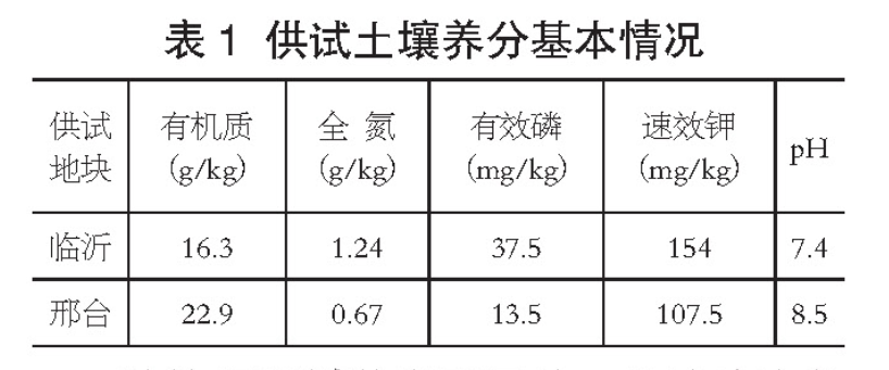 2024年,公司分别在山东临沂和河北邢台开展试验示范,每个示范点均设2个处理组。山东临沂示范点处理组采用红四方“芯聚天”增效复合肥40%(27-5-8),习惯施肥处理组为玉米专用肥料42%(30-6-6);河北邢台示范点处理组采用红四方聚天复合肥38%(27-5-6),习惯施肥处理组为自拌掺混肥44%(28-8-8),均不设重复。所有供试地块均地势平坦,紧靠水泥道路,交通便利,水浇条件好。供试地块土壤养分基本情况见表1。