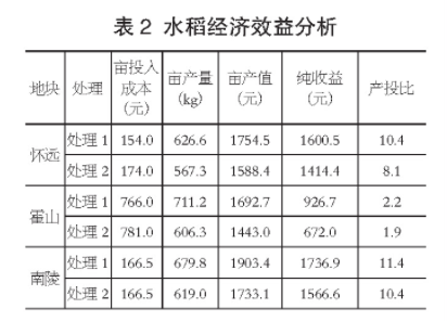 由表2可以看出,与农户常规施肥相比,施用缓释掺混肥平均增产12.2%,亩产值较常规对照平均增加12.5%,纯收益平均增加20.6%,增产增收、节本增效效果明显,具有减少化肥使用量、增加产量、降低成本等优点,在水稻产区具有大面积推广应用的潜力。